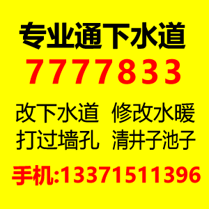 专业通下水道,马桶厨房下水道,清洗管道,清井池子,改下水道修水暖,打过墙孔,清洗地暖,换分水器,修水管等,价格优惠。
